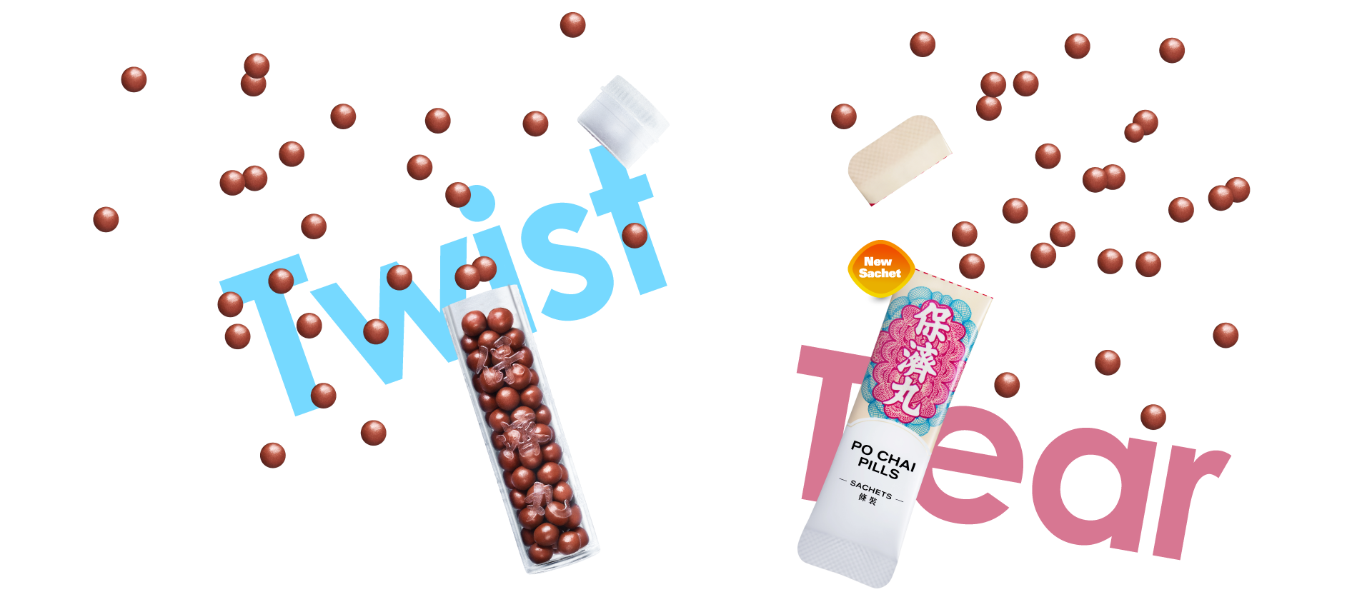For over 120 years, Po Chai Pills has been the go-to for tummy troubles. We’ve kept the same trusted formula through the generations - first in our trustworthy twist bottle, and now also in the sleek tear sachet. Whether it’s diarrhoea, stomachache, overeating or after-drinks discomfort, you can now take your relief two ways!